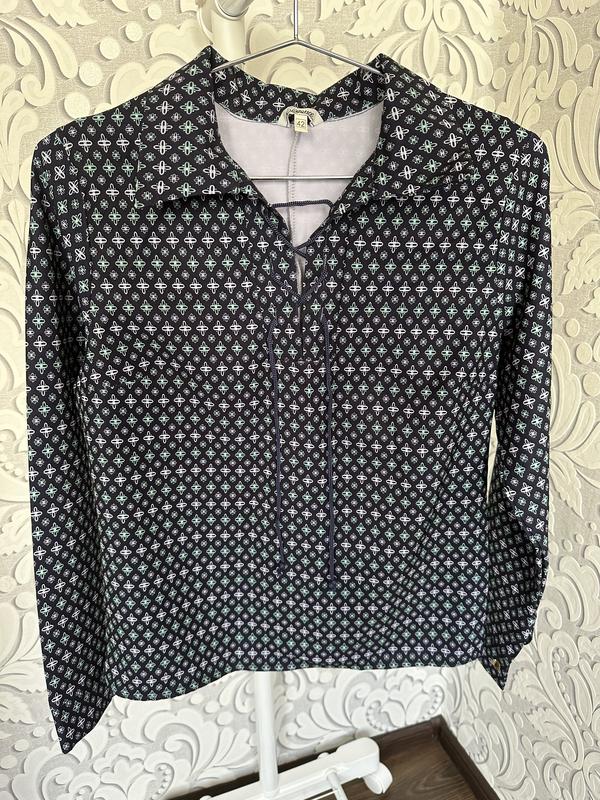Блуза на шнурочках спереду Приятная ткань Имеет хорошее состояние Размер 42 Выглядит очень элегантно
