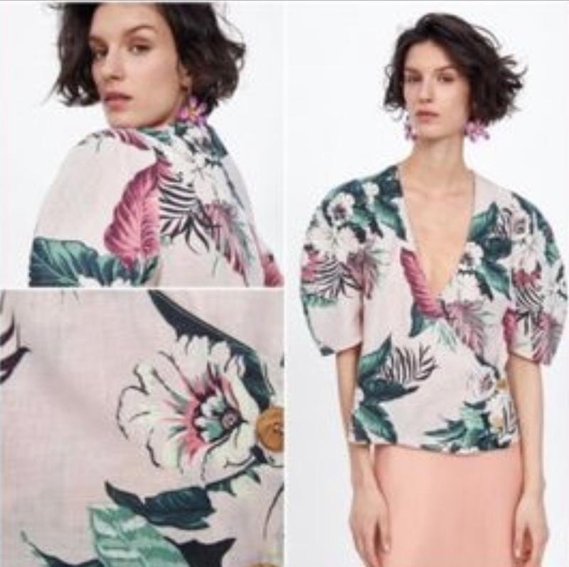 В наличии Нова Рубашка из льна в цветочный принт, льняная рубашка с вырезом в цветы из новой коллекции Zara размер L достаточное покрой,40 л, Состав коттон.,также произвольного кроя струйно ниспадающего рукава Оригинал с бирками