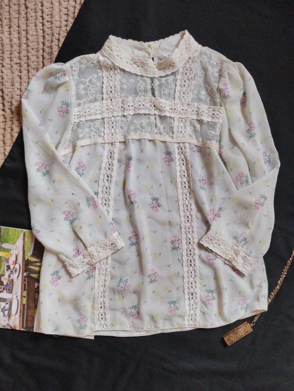 изысканная, нежная, кружевная блуза застегивается на пуговицах замеры измерения