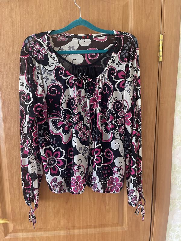Легкая и дышащая блуза. Хорошее состояние. Размер не указан, примерно, 56-58. По запросу замеры.