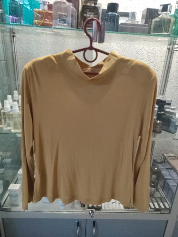 горчичного цвета ззаду на гудзиках есть несколько затяжек ткань напоминает плотный шифон, но тянется пог 56 тянется к 65 плечи 45 рукав 60 длина 59