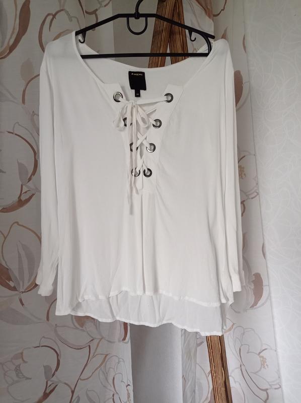 блуза со шнуровкой красивая стильная р.М в носке не была,бирка отсутствует