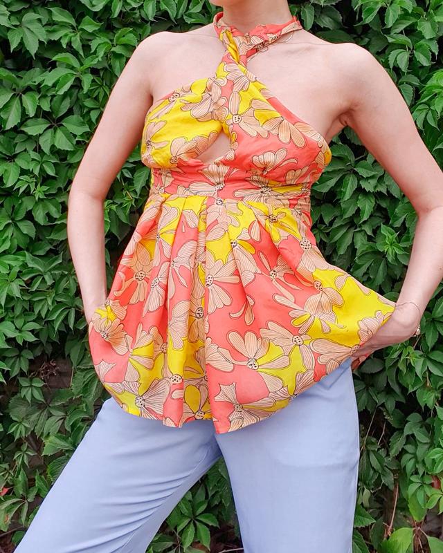 Крутой женский топ из натурального шелка бренда Kookaї. Нежная воздушная ткань добавляет образу легкости и романтичности. Сзади топ застегивается на молнию. На подкладе. Возникли вопросы пишите в сообщениях!