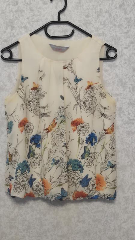 Блуза молочного цвета с цветочным рисунком Размер 12, подойдет на наш 44-46 г. Длина 55 см ПОГ 46 см