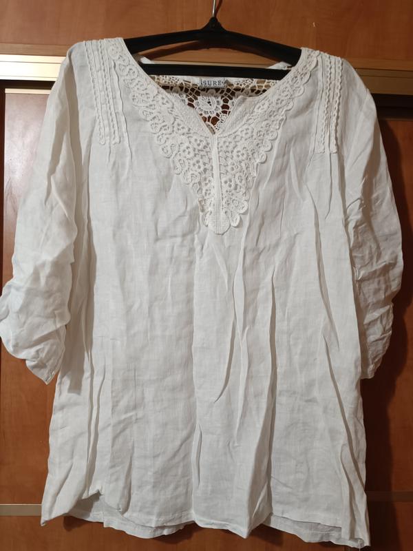 блуза лён отделка натуральное кружево, рукавчик регулируется, в носке не была