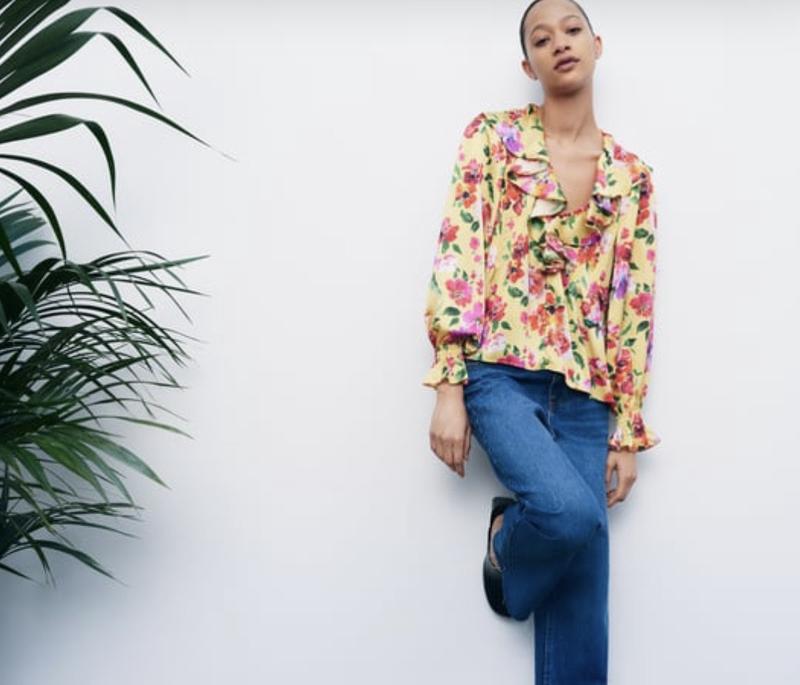Жовта блуза в квіти від Зара.Розмір М.Модель нових колекцій.Тканина-якісний сатін.Стан ідеальний.Гарна якість.Без торгу Довжина-55 ПОГ-45,тягн до 47 ПОТ-48 Рукав-68/59