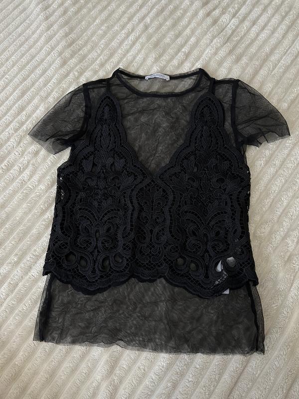 Стильный топ сетка+кружево Новый, но без бирки (звездная бирка перед примеркой но не подойти размер)