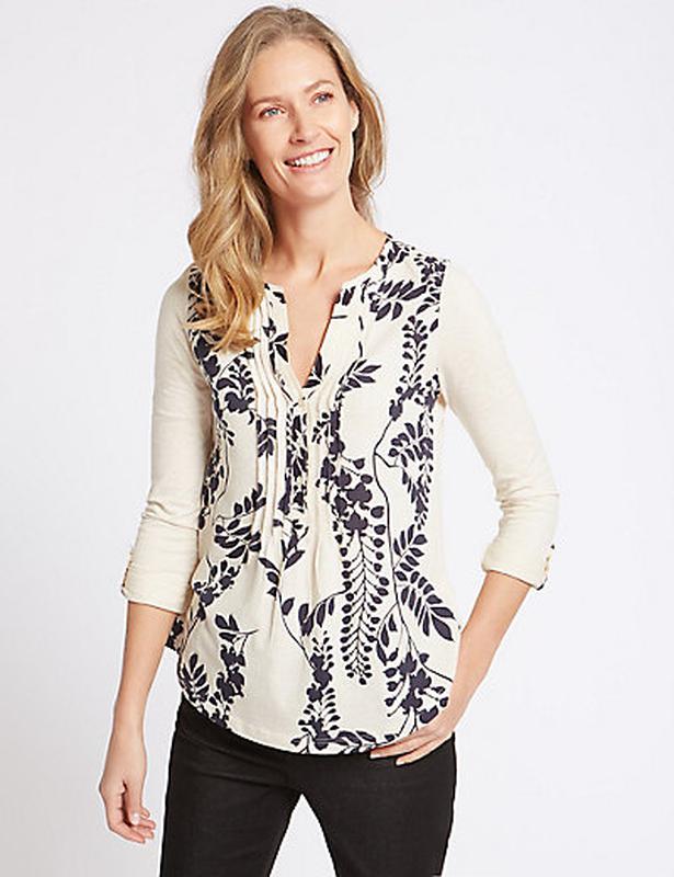 Красива кофточка в квітковий принт марки "Marks&Spencer" Classic. Можна носити на довгий рукав або на три-чверті. Тканина дуже мягенька, приємна до тіла. Розмір: англ. 8 / євр. 36 / укр. 42 Заміри у вільному стані, тканина ще тягнеться: Плечі 37 см Довжина рукава 62 см Пог 45 см Пот 45 см Ширина по низу 56 см Загальна довжина 68 см