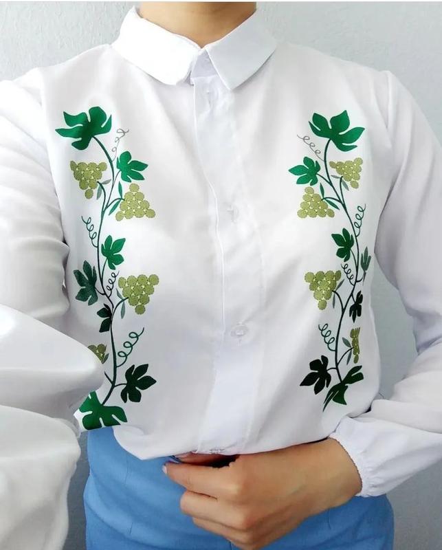 Блуза))) Размер : 44-46, 48-50 Размер: 52-54, 54-56, 56-58 Цена 730 грн Тканина: сорочкова Рисунок: сублимационная печать, стилизованный под вышивку...