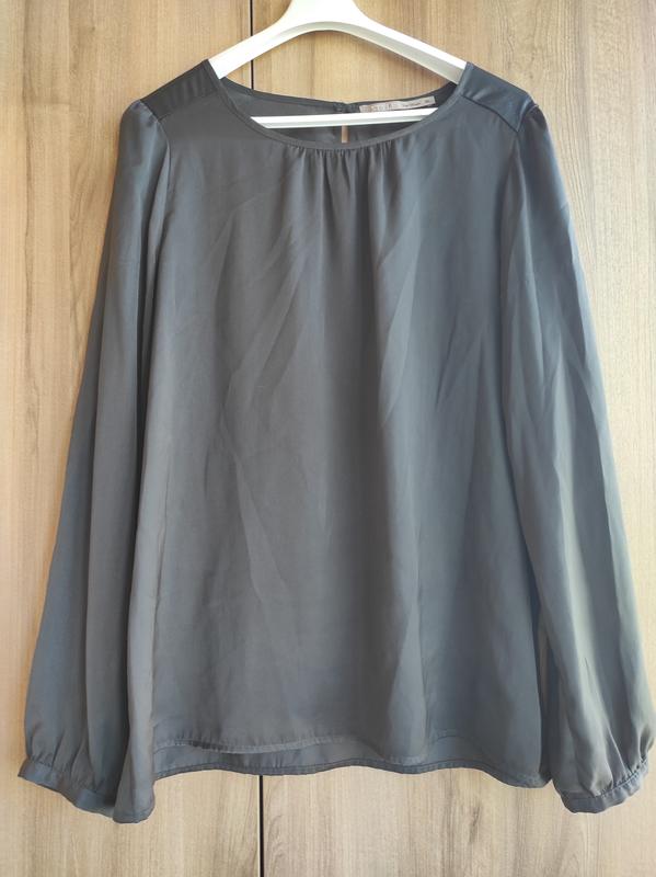 Блуза цвета черного шоколада, размер XL, наш 48-50. Длина 71, рукава 66, плечи 41, ПОГ до 57, ПИТ до 55, низ до 61 см. Стан идеален!
