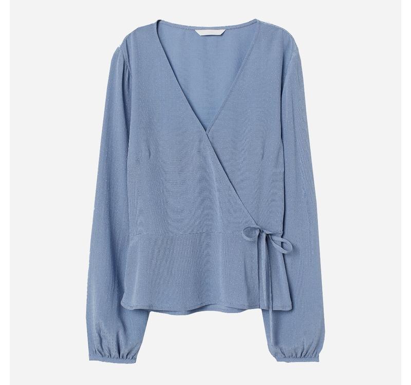 Особенности модели: Блузка из вискозной жаккардовой ткани с треугольным вырезом и заворачивающейся полочкой с потайной шнуровкой и застежкой на крючок. Узкая тесьма сбоку. Длинные рукава с разрезом и застежкой снизу. Отрезная талия с расклешенной баской.