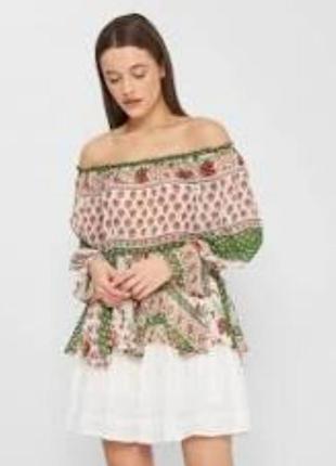блуза с зеленым принтом рукав три четверти ткань полиэстер повседневная размер S