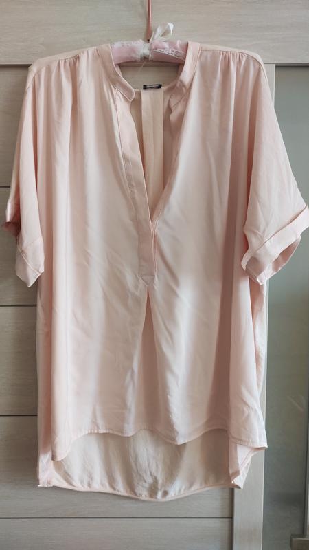 легкая блузка 58р пог 68 см, длина спереди 70 см, сзади 81 см., тянется.