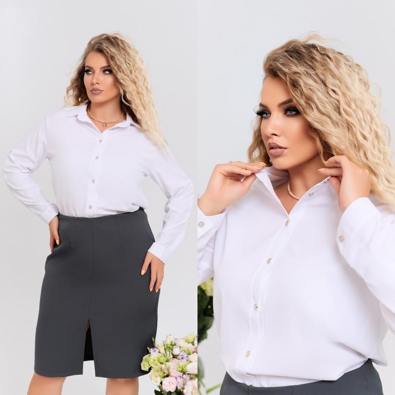 Сорочка класична, рукав трансформер Тканина: софт Розмір: 42-44, 44-46, 48-50, 52-54, 56-58, 60-62 Кольори: білий, чорний, капучіно, шампань Довжина норми (42-44, 44-46) : сорочки – 68 см. рукав – 54 см. Довжина батал (48-50, 52-54, 56-58) : сорочки – 78 см. рукав – 55 см. р.42-44 ОГ-ОТ: 96-94 р.44-46 ОГ-ОТ: 104-102 Р.48-50 ОГ-ОТ: 112-112 р.52-54 ОГ-ОТ: 120-120 р.56-58 ОГ-ОТ: 128-128 р.60-62 ОГ-ОТ: 134-134 бб