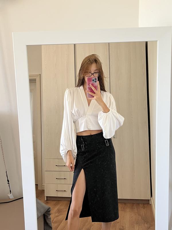 Роскошная блузка белого цвета. Размер L, однако вот так смотрит на меня (я размер S). За дополнительными фото обратитесь в частные сообщения! При покупке трех вещей - скидка 10%🥰 Юбка на фото тоже в наличии