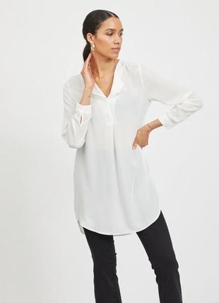 Туника свободного кроя с длинным рукавом Vila (Дания) - V-образный вырез - Застежка на две пуговицы - Легкий материал В наличии в размере EUR 38 - Длина руква: 61 см - Длина: спереди: 86 см, сзади: 91 см Ткань 100% полиестер В наличии в размере EUR 38 Замеры на запрос