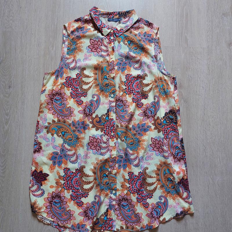 Блуза без рукавов удлиненного фасона, нежного цвета, легкая и невесомая. На груди есть вытачки. Можно надевать как блузу, тунику и как пляжное платье.