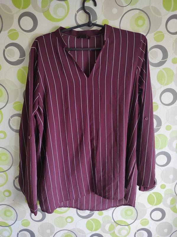 Гарненья блуза цвета бордо с V-образным вырезом✨ Можно как с длинным рукавчиком,так и подкачивать🌸