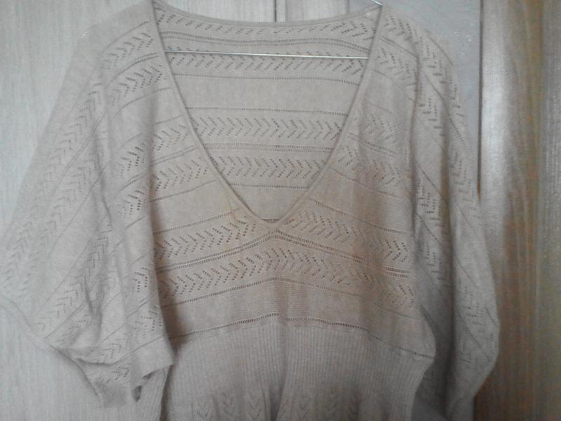 Блуза из вязанного полотна.Длина по спинке 84 см.Длина рукава 39 см.Рукав реглан,пройма спущенна.ПоТ 45 см.ПоГ 50 см.ПоБ 60 см. Блуза летняя,лёгкая.