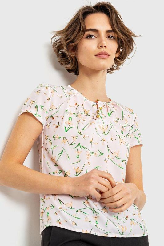 Блуза з квітковим принтом, колір рожево-зелений, 230r112-2