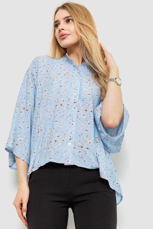 Блуза класична з принтом, колір блакитний, 102r332-2