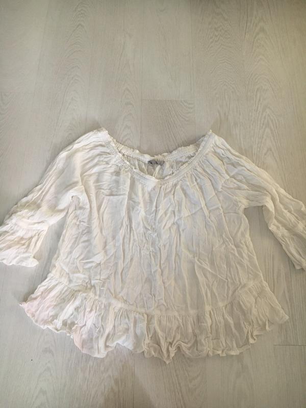 Блуза на плече Б\у хорошее состояние Размер М/Л Длина 45 см Рукав 45 см Резинка тягнеться до 57 см Грудь 38 тянется