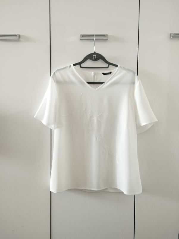 Блуза белого цвета с вышивкой, состояние новой, ткань не тянется, по бокам есть маленькие разрезы, сзади по горловине пуговица. Ориентируйтесь на замеры. Плечи 43 ПГ 56 ПТ 55 ПБ 58 плюс разрезы Длина 64 Рукав 23 Ширина рукава внизу 20