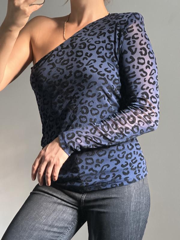 Красивые блуза на одно плечо в леопардовый принт, сбоку на молнии.