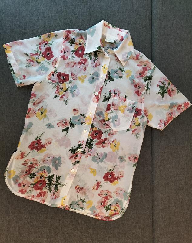 легкая, прозрачная, яркая блуза рубашка в цветах 38,40,42. производство Германии. Замеры: подмышки 55,5см; ПОТ 54см; плечи 43см; длина изделия полностью по спине 79см.