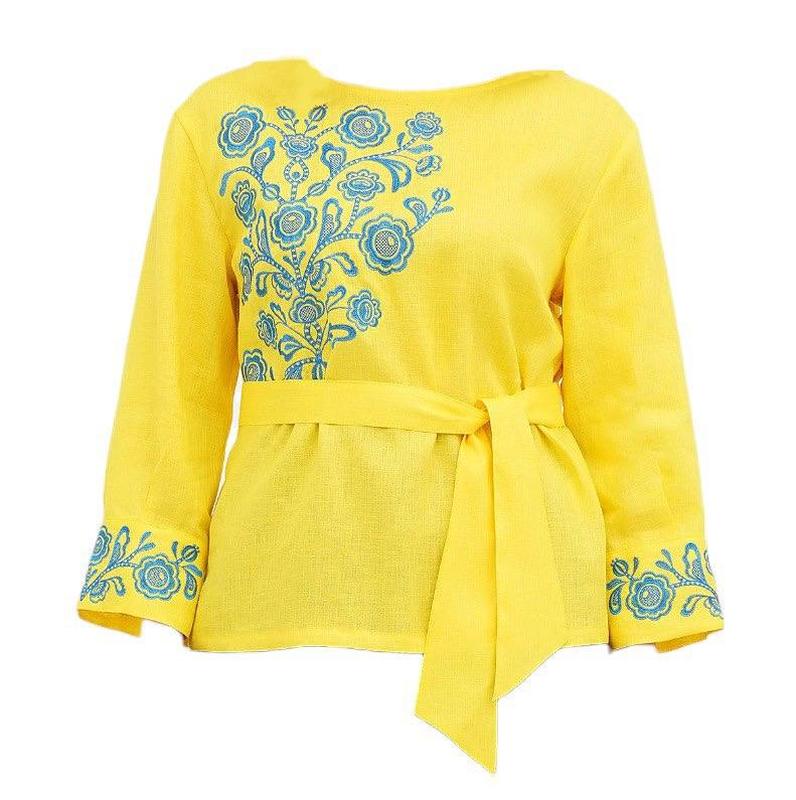 Блуза галина желтая с вышивкой, льняная, галерея льна, 44-54рр.