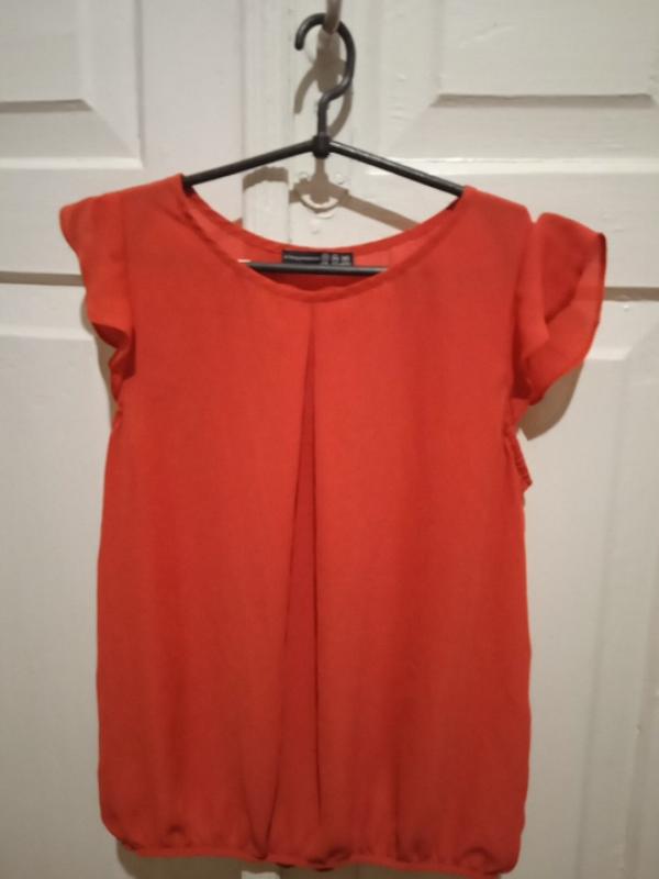 Блузка женская, широкая, длина 56 см, полуобхват грудь 54 см, плечи 35. Тканина синтетична. Размер на фото.