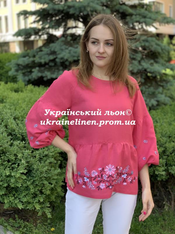Блуза гандзя малина с вышивкой, льняная, галерея льна, 40-52р.