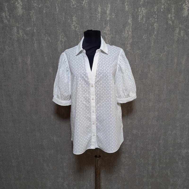 Блуза из нежнейшего батистового хлопка. -100% хлопок-батист 👍 - ШИКАРНАЯ лазерная перфорация ткани "ЦВЕТОК !!! - Приимуществом является- утонченная и опрятная окантовка ткани (не сыпется). -Легкая,воздушная,отлично пропускает воздух невесомая! (нежаркая). -ЗАМЕРЫ -ПОГ-56см. -ПОТ-55см. -Длинна по спине-66см. -Ширина по низу полуобхват-61см. -Плечи-41см.