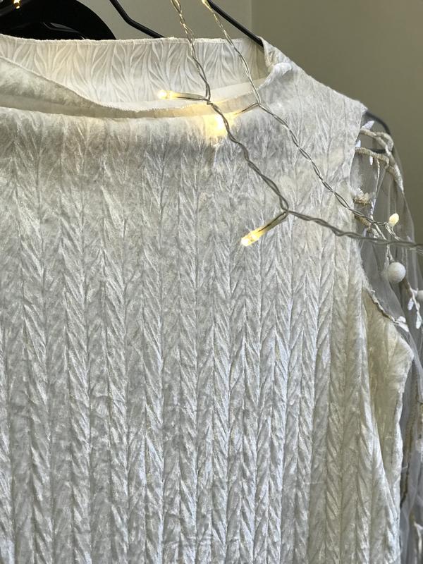 шия лодочкою ширина от одного края плеча до другого 36 см ширина под руками 45 длина рукава 58 см длина самой блузки 56 см подойдет на S,M