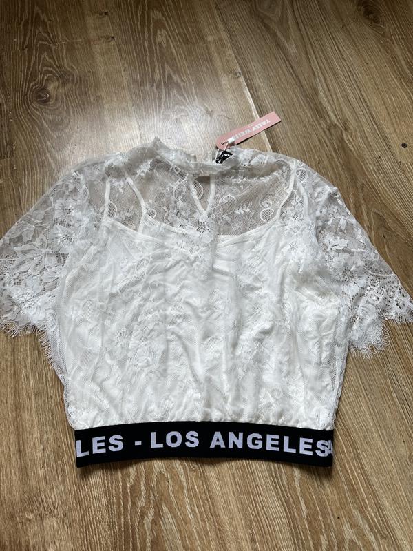 Топ кофта гипюровая с коттоновой майкой из низа на резинке