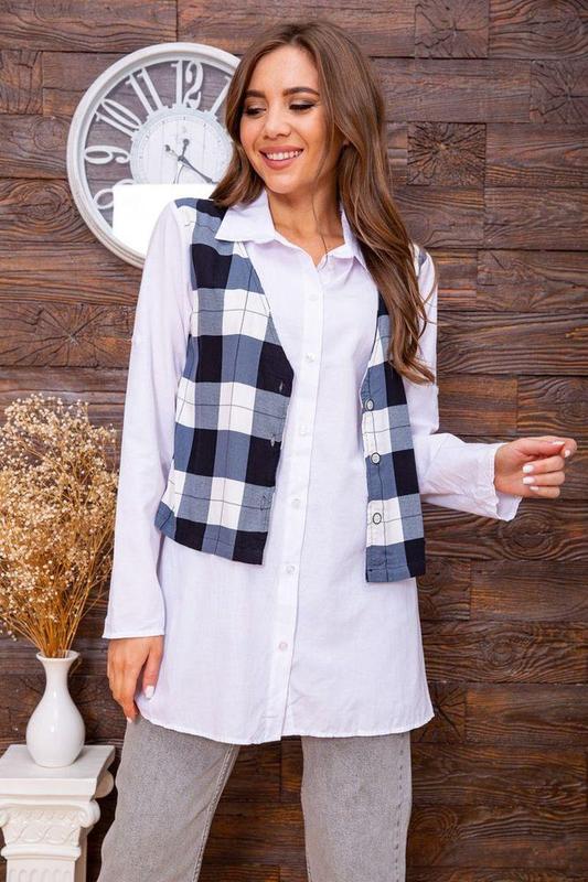Жіноча сорочка з декором в клітку біло-сірого кольору 119r321-1