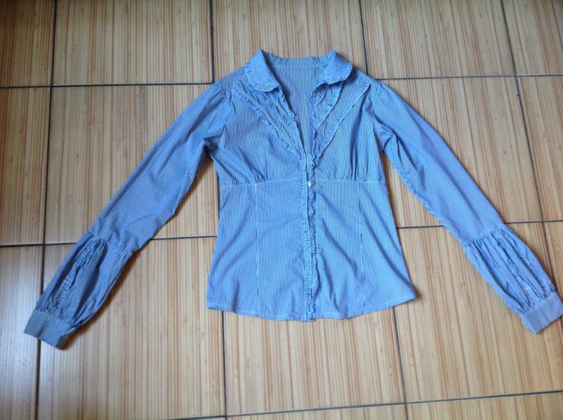 Блузка/36,очень необычного дизайна.Куплена в Италии.Рукава снизу (возле манжета) выглядят нтересно за счёт формы "фонарик" и тонкого рюша.По линии груди тонкие рюши.Под грудью отрезная и присобранная.Застежка справа и слева слегка прикрыта тонким рюшем.Очень приятная к телу,красиво облегает фигуру.ПОГ 43 см ,ПОТ 35 см,длина рукава от шеи 71 см,длина изделия по спине 54 см.Смотрите мои другие объявления.