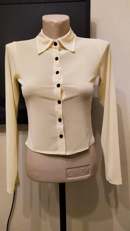 Стильная рубашка-топ лимонного цвета.Пог-41,Пот-33,длина-43.Нова,с запасной пуговицей.