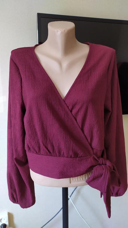 Блуза на запах яркого винного цвета.Пог-51,длина-48.Тянется.