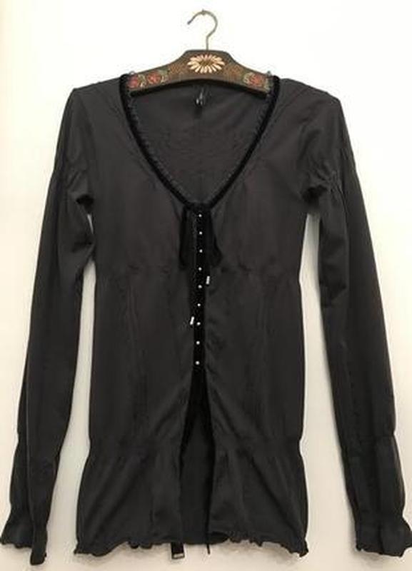 Качественная блузка, можно использовать как кофту известного бренда. Стан идеален, без дефектов. Все бирки есть. Фурнитура серебро, с логотипом бренда. Состав указан на бирке. Материал очень хорошо тянется, измеряйтесь по измеренным замерам в описании. Красивый дизайн, окраска на ткани орнамент. Длина от плеча 71 Плечи от 41 Рукав 71 (можно драпировать) Пог 37-53 Пот 34-50 По низу 41-62 Доставка Укрпочтта и Нп, безопасной оплаты нет, читайте отзывы покупателей и раздел про продавца