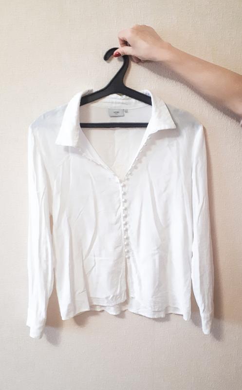 Не успела погладить после стирки, поглаженной вид конечно же отличаться:), Белая блуза на пуговицах от Ichi. Ткань очень легкая, дышащая и приятная на ощупь. Размер М (38) Состав - 100% вискоза Стан замечательный