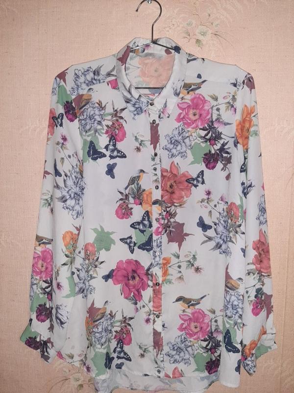 Блузка в цветах, UK 14 : ПОГ - 54, длина - 67 перед и 73 по спинке, рукав - 59, плечи - 41см