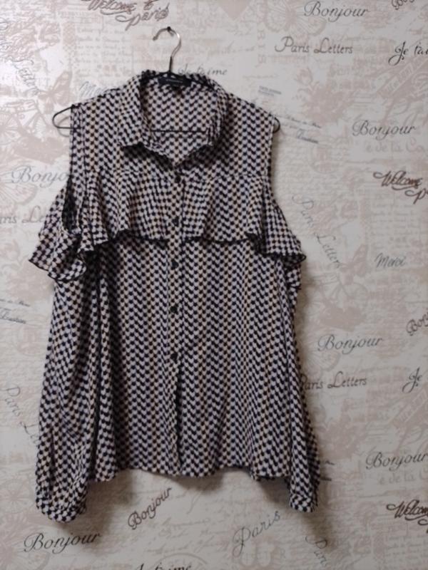 Очень красивая, с открытым плечами блуза, замеры пог 57, пот 58, длина 68.