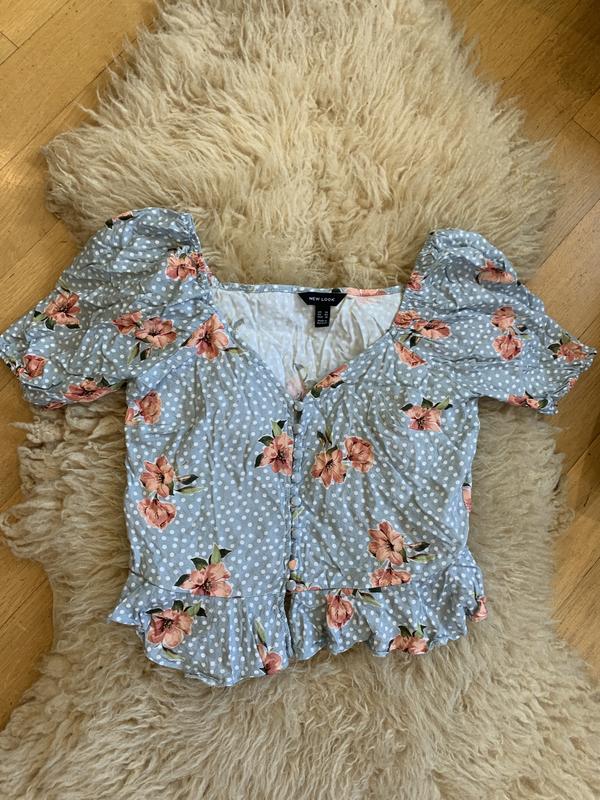 Блуза в цветочный принт и горошек. Идет укороченная как топ. Размер м-л. За деталями в лс