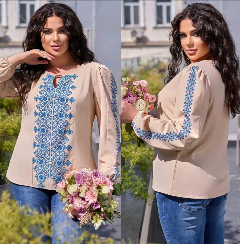 Блузка "вышиванка", ткань супер-софт, 3-д принт, Турция, размер 46-48, полномер