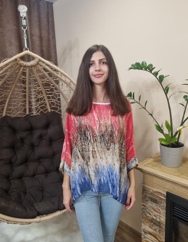 блуза нова длина 67 см полуобхват груди 85 см на фото одета на настройки 87/62/92, рост 174 см ткань 65% коттон, 35% полиэстер