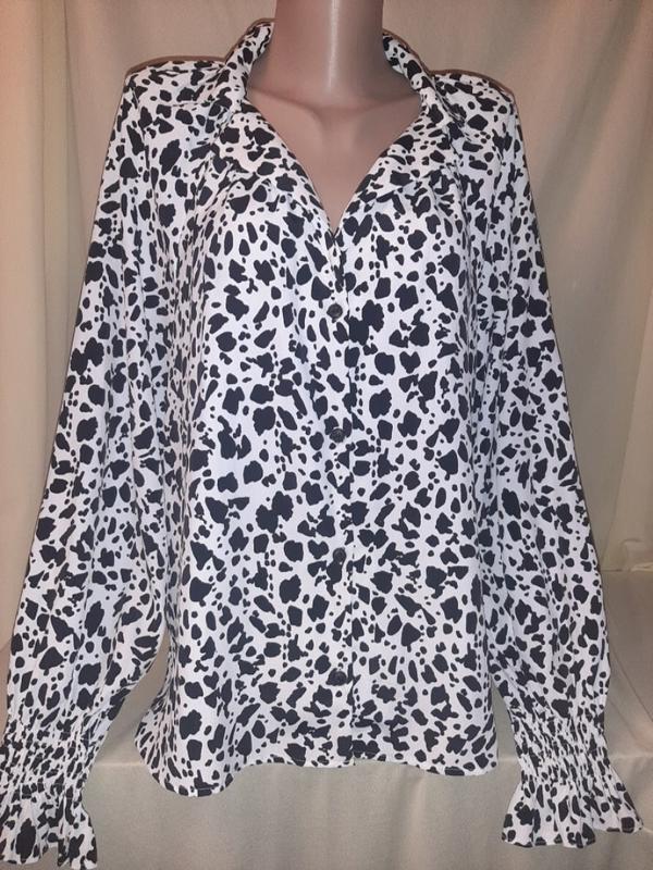 Блуза долматинець, розмір UK 12 ПОГ - 52, довжина - 60 рукав - 70см та за рахунок резинки - є можливість піднімати рукав