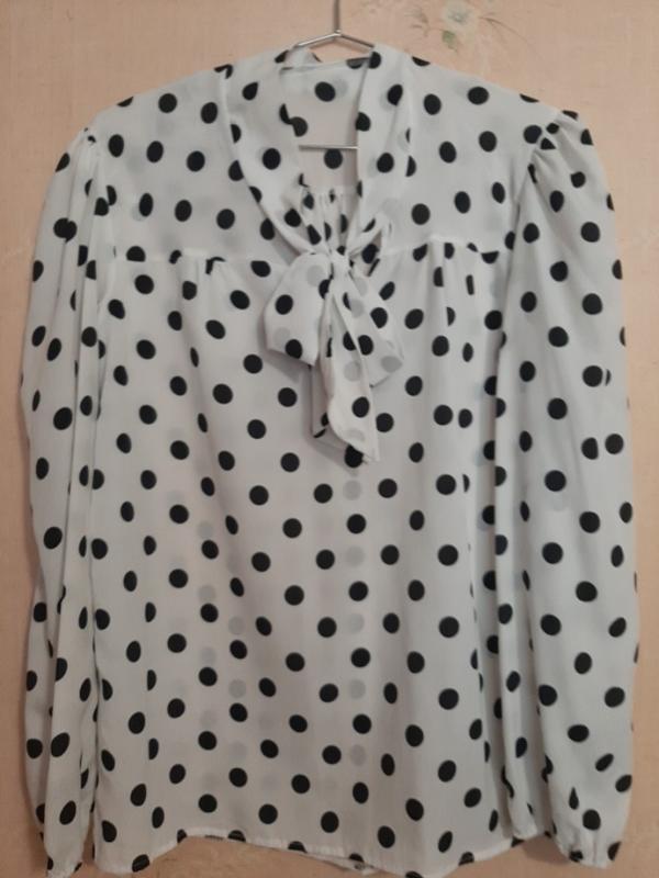 Блуза в горох с бантом, размер UK 12 : ПОГ - 55, длина - 70, рукав - 61см