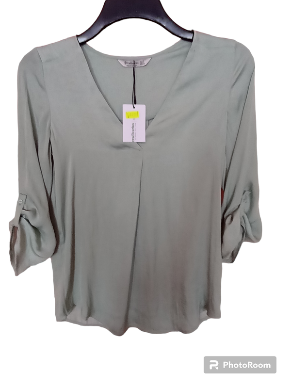 Блузка,очень легкая,блидо-салатового цвета, внимательного кроя.Длина-65см,плечи-35см,грудь-48см,рукав-44см.Бренд "Stradivarius".