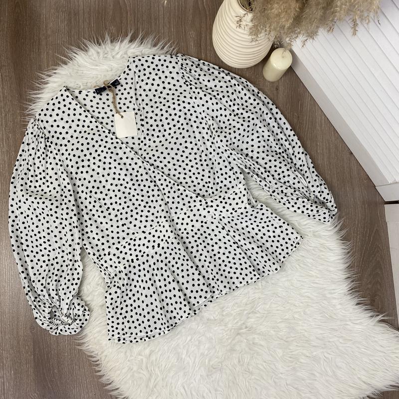 Блуза в горошок Размер м-л Пог 48-52 Рукав 49 Длина 59 Цена 319